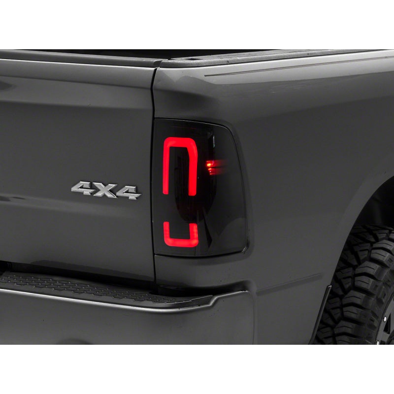 A great way to add a blacked out, stealthy appearance to your RAM is with a pair of Smoked Axial LED Tail Lights. These Taillights feature a unique halo style running light design that will update the look of your. Whether your RAM is your daily driver, a dedicated work truck or your weekend toy, these Axial LED Tail Lights will make an impactful statement that sets your apart from all the rest. Manufactured from OEM grade materials, these Axial Tail Lights are assembled to precise standards for long lasting quality. These Tail Lights feature durable black ABS plastic housings with smoked polycarbonate lenses. Employing red LEDs for use as brake, running and turn signal lights, these Tail Lights use white LEDs for the reverse lights. Each housing is weather-sealed to prevent dirt and moisture from harming the state of the art electronics found inside. These Axial LED Tail Lights were designed to be a direct plug and play replacement for your original factory housings. There is no cutting or modifications required for a clean straight forward install. Installation can normally be completed in about 45 minutes with just basic hand tools.